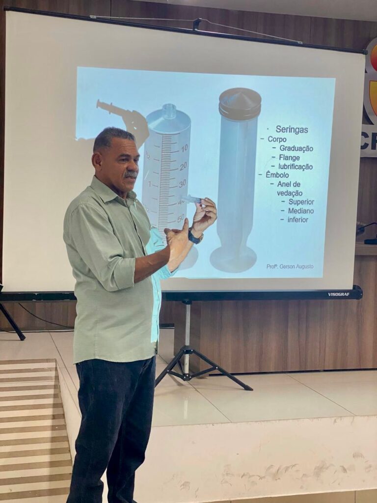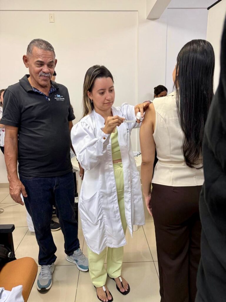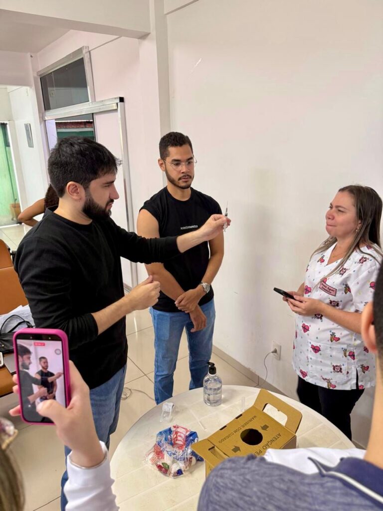 Durante o primeiro dia, os participantes aprofundaram conhecimentos teóricos essenciais para a prática segura da vacinação. Já no segundo momento, a programação foi voltada para atividades práticas, permitindo o desenvolvimento de habilidades técnicas fundamentais para a aplicação de vacinas e injetáveis com segurança e precisão.